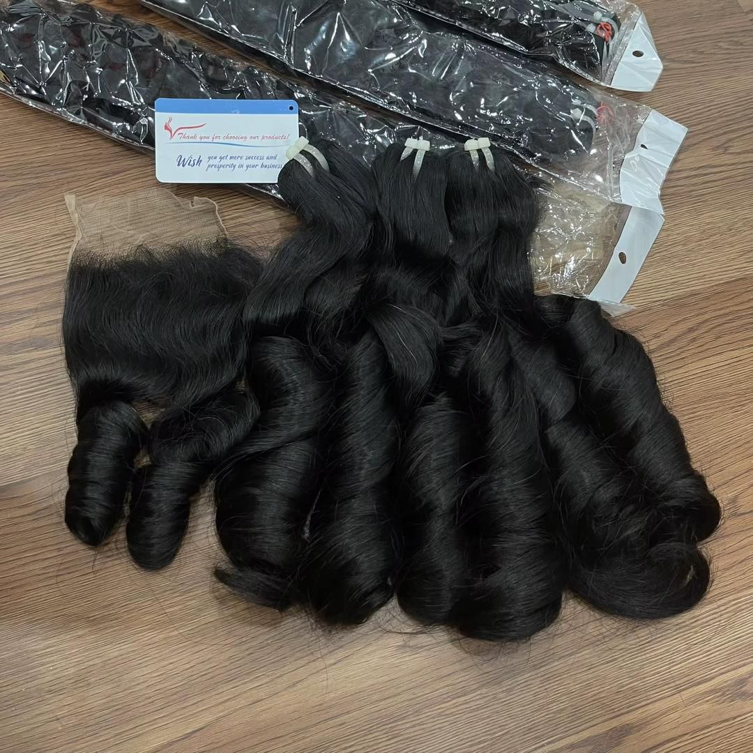 Turn heads effortlessly with our premium Vietnamese Bouncy Curls. This set includes 3 full bundles and a matching frontal, giving you a soft, voluminous, natural curl look.